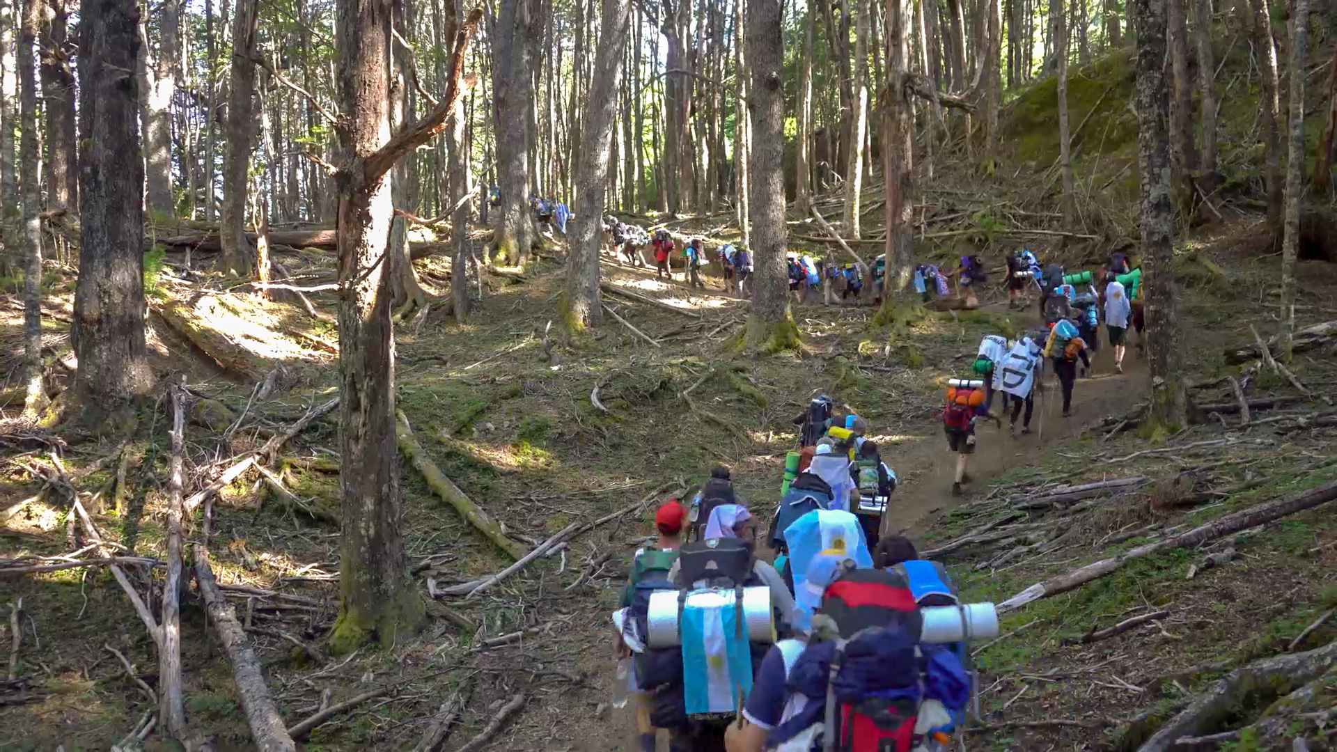 Los compañeros y compañeras de la columna Juana Azurduy —integrada este año por representantes de 17 provincias y 21 organizaciones sindicales, sociales y ciudadanas— están en este momento transitando la ruta hacia el Lago Escondido por el camino de montaña, a la altura de Los Laguitos. Nunca se puede estar del todo seguro hasta dónde se va a poder avanzar, porque esto se juega entre el campo nacional y popular, representado en la columna, y los esbirros, los cipayos que trabajan para el británico Joe Lewis, que todos los años intentan obstaculizar la llegada.