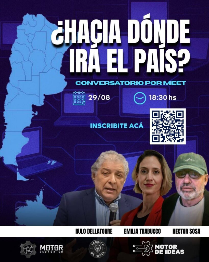 Este viernes 18.30 hs. por el Meet de «Fábrica de Ideas» charla de Dellatorre/Sosa/Trabucco: ¿Hacia dónde va la Argentina?