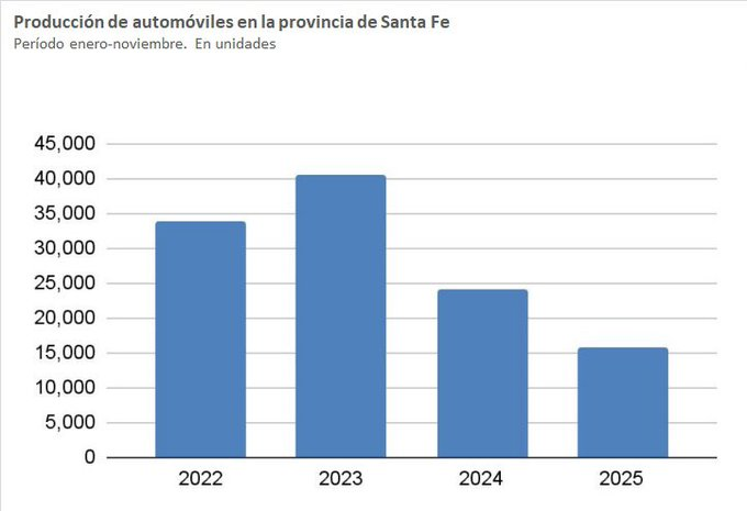 La producción de la industria automotriz en la provincia de Santa Fe registró una caída del 31,4% en 2025. La caída profundizó la baja del 40,5% del año anterior en un contexto positivo en lo que tuvo que ver con la venta de unidades en el país.