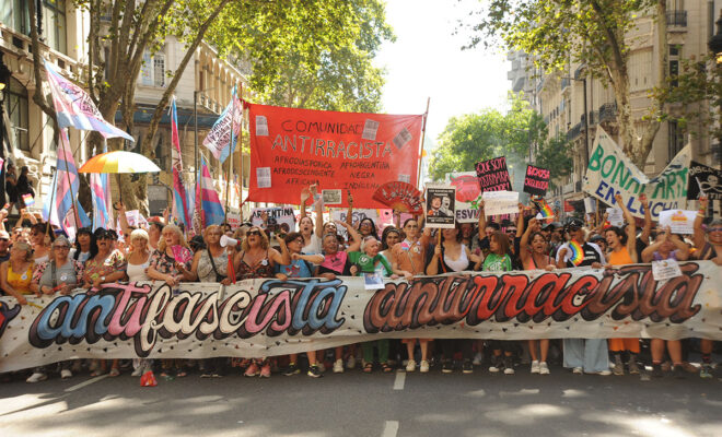 (*Emilia Trabucco ) La Marcha del Orgullo Antifascista y Antirracista del 7 de febrero se inscribió en una coyuntura marcada por la profundización del programa de gobierno y por una crisis de representación que atraviesa al campo popular argentino. La convocatoria retomó el antecedente del 1° de febrero de 2025, cuando los dichos del presidente Javier Milei en el Foro de Davos —al señalar como enemigos del orden a feminismos, disidencias, universidades, partidos políticos y organismos de derechos humanos— activaron una reacción social amplia.