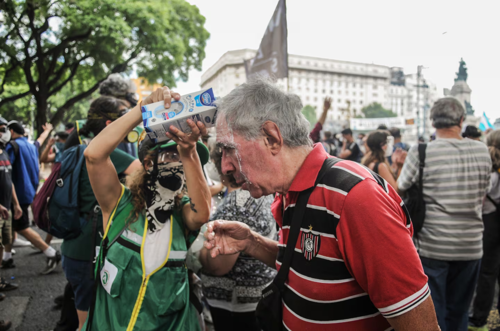 El referente del Cuerpo de Evacuación y Primeros Auxilios (CEPA Argentina), Esteban Chala, contó que asistieron a muchos heridos por gases y por balas de goma. En diálogo con Página/12, recordó el caso de un joven al que tuvieron que pararle una hemorragia en la boca por el impacto de un perdigón en el labio. “También mucha gente por intoxicación por los gases y por el spray de pimienta”, dijo.