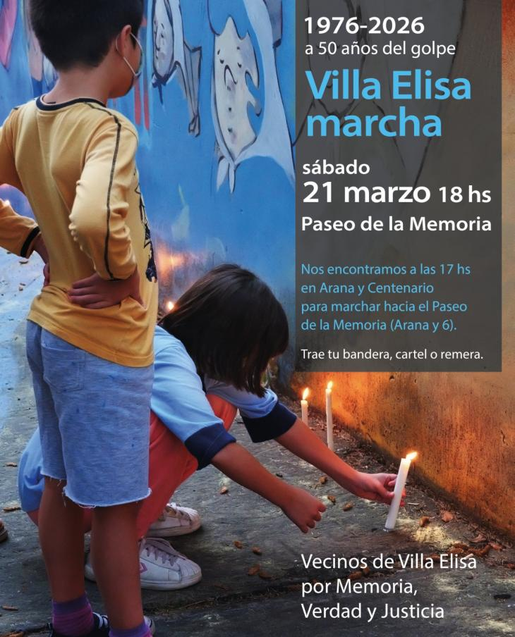 La convocatoria, impulsada por el espacio Vecinos de Villa Elisa por Memoria, Verdad y Justicia, busca reunir a la comunidad para homenajear a las víctimas del terrorismo de Estado y reafirmar el compromiso colectivo con la democracia.